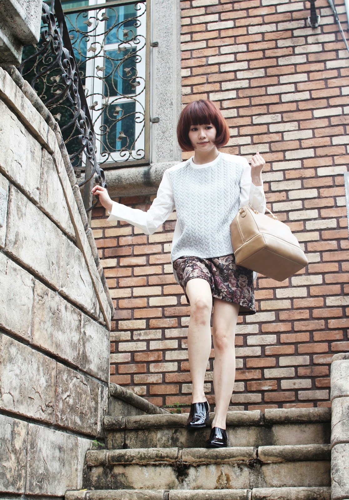 上身的平衡感。像是圓領毛衣也是襯衫的編紋上衣是近期的最愛,我想程度是不輸給Sasha的(笑)簡單輕鬆的穿著,帶點混搭元素感與藝術風的玫瑰短褲,Sasha的駝色亮點也打亮了不少。