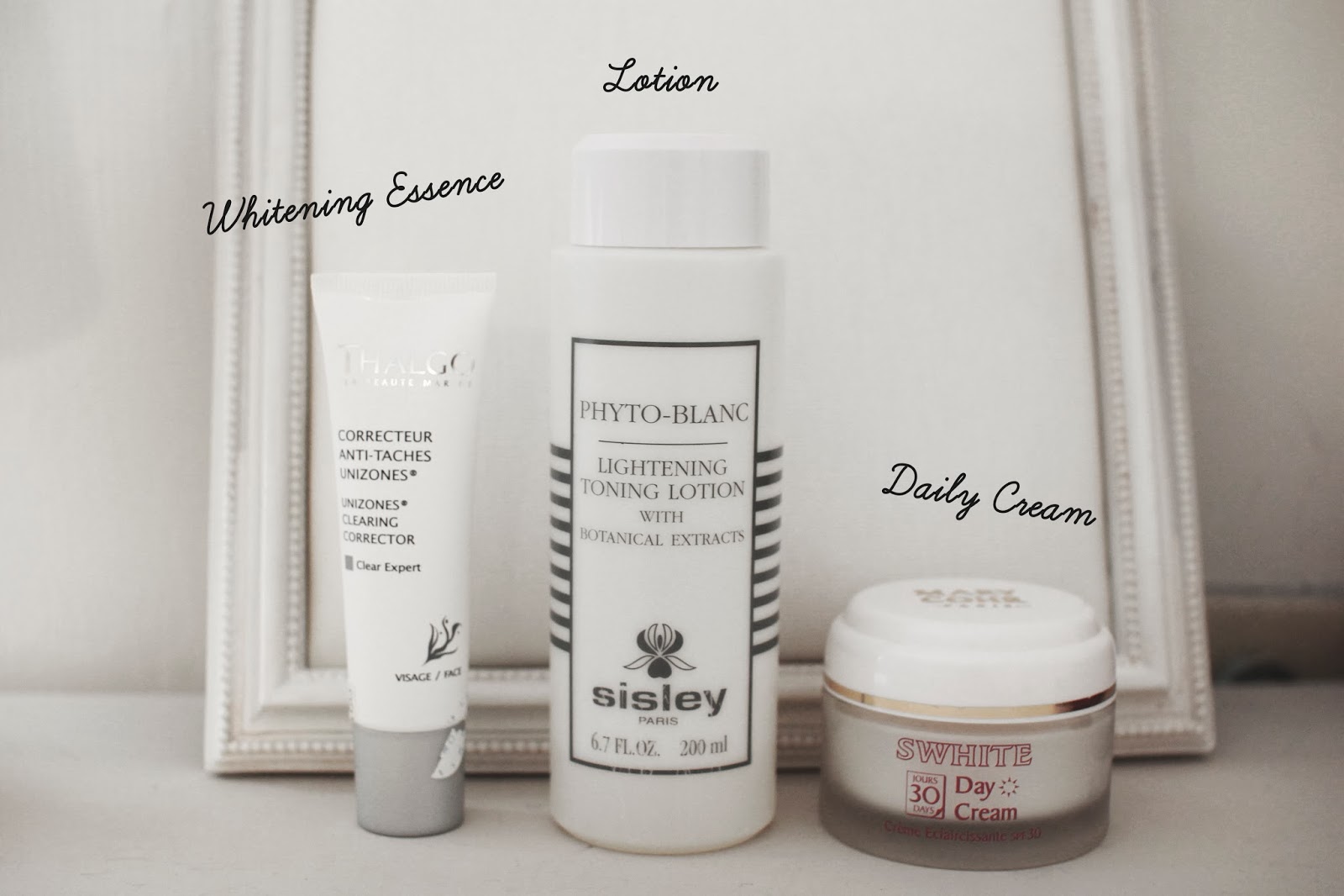 美白保溼三寶:Thalgo 美白整膚液、Sisley 美白化妝水、Mary Cohr 日用美白乳霜(SPF 30)