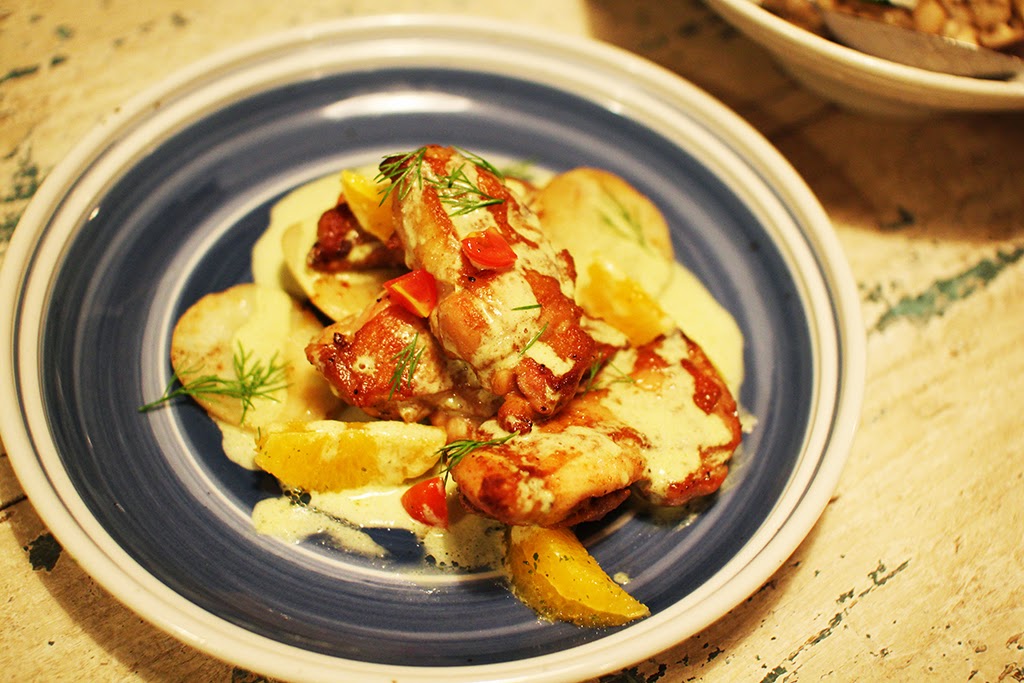 店內走的是地中海式的料理,菜單地呈現也滿多元的.推薦大家點牛小排芝麻嫩葉與茶漬蔓越莓莎莎(有點長的菜單),這道是我目前吃過可以列入前三名驚喜的沙拉,酸甜中又有豐富的層次感,牛小排雖是主菜感放在前菜很對我這個肉食人的胃口(笑)