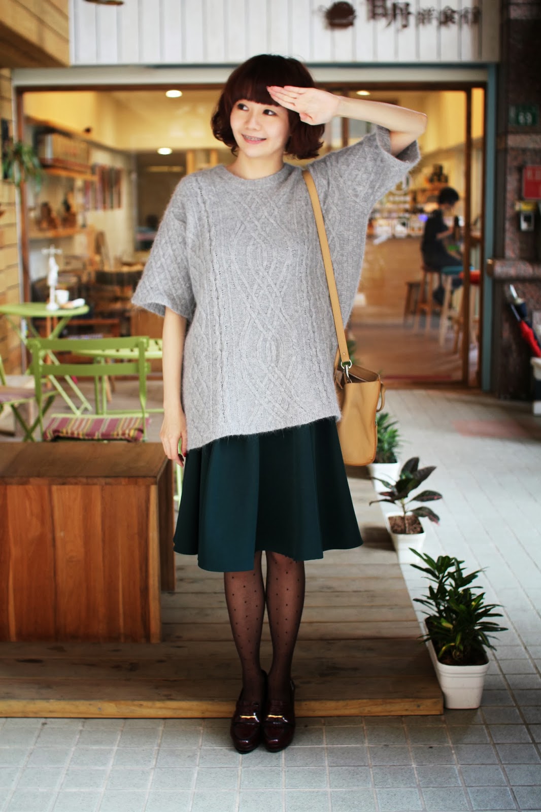 我的點點透膚色褲襪好久沒登場了!法式優雅長度的裙擺下,還有可愛的點點裝飾出聖誕節Xmas的氛圍.